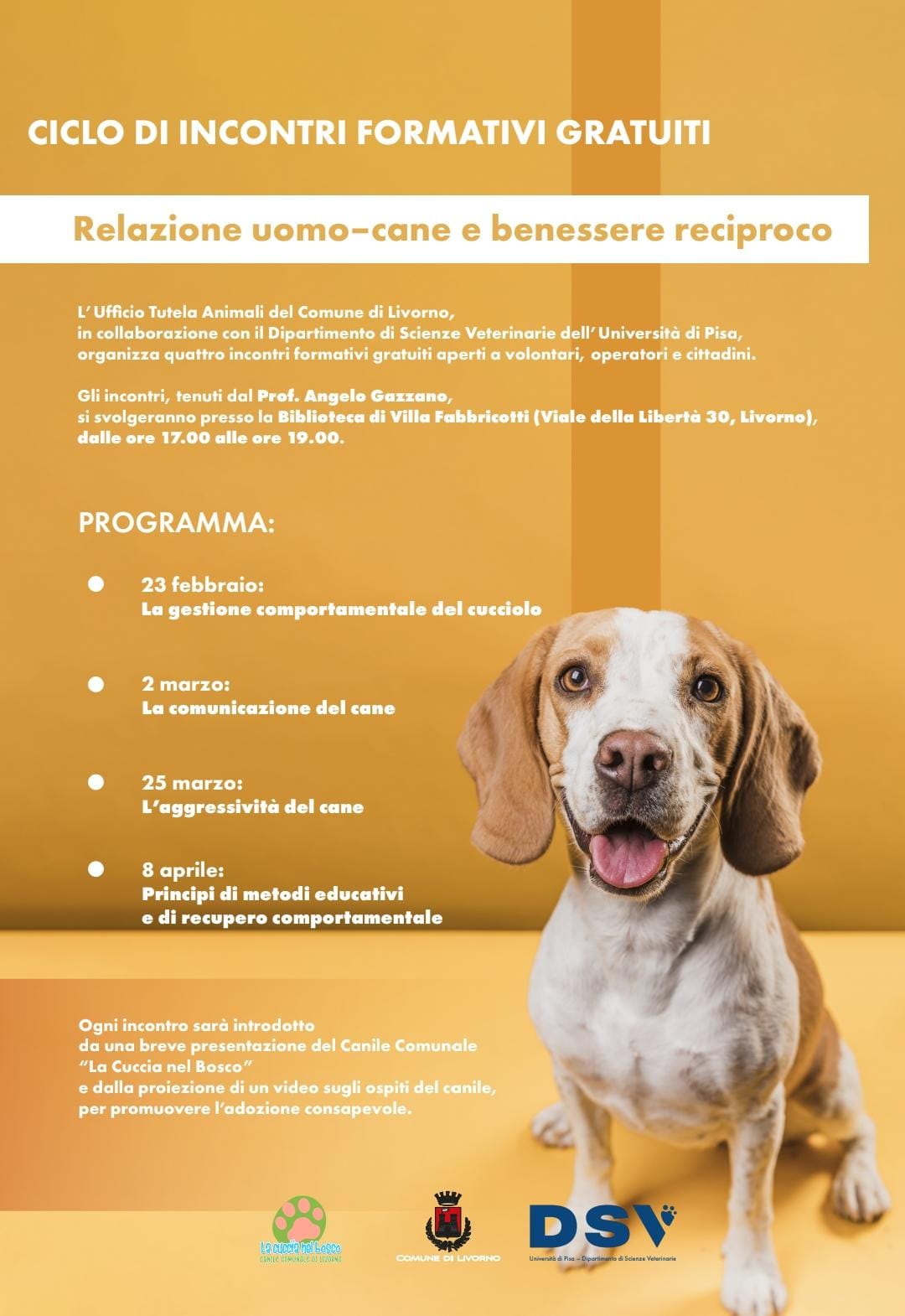 Relazione uomo-cane e benessere reciproco Pubblicato il: 23 Feb 2026 Ciclo di incontri per volontari del canile e cittadinanza “Relazione uomo-cane e benessere reciproco” Programma Written by Redazione